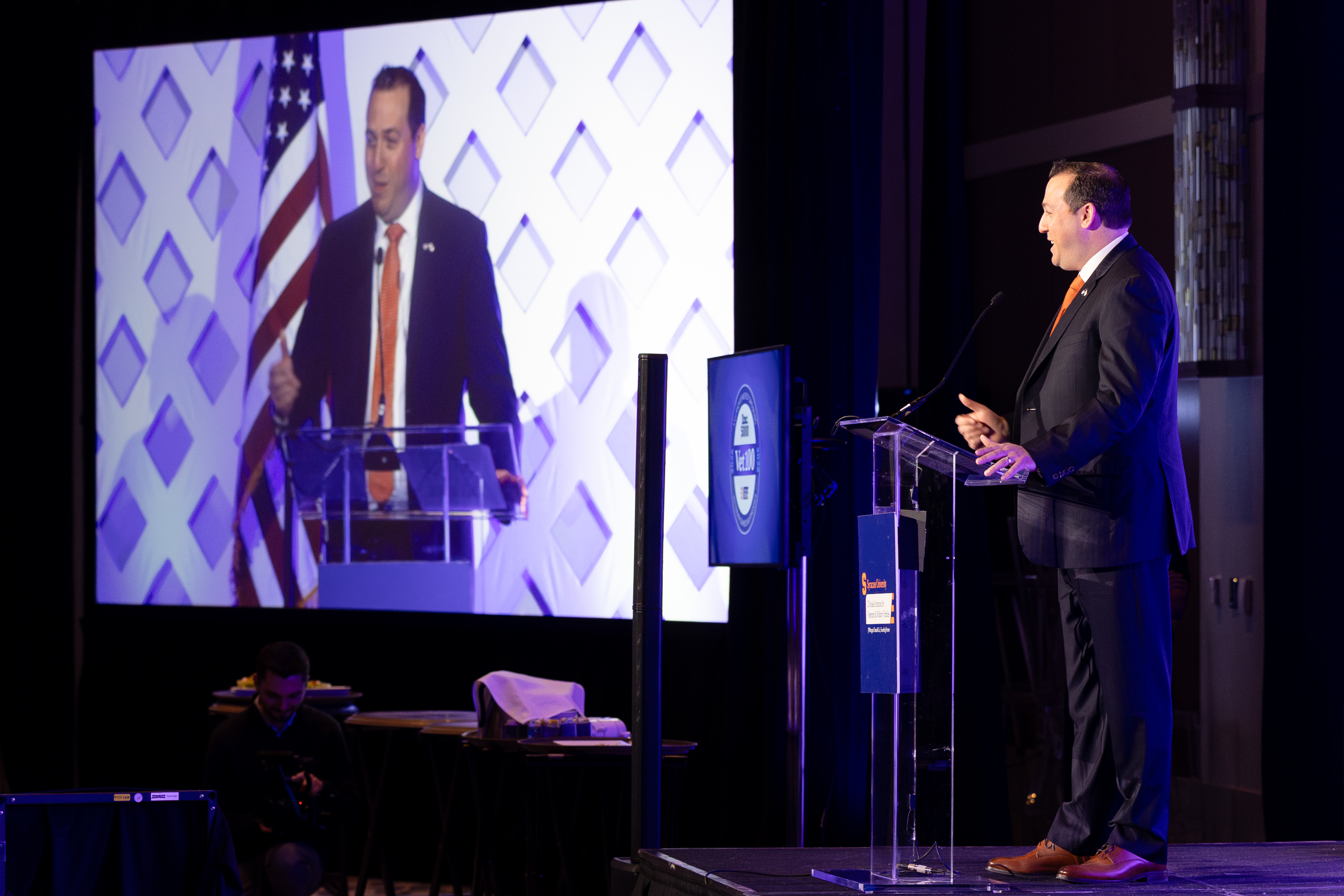 IVMF Deputy Executive Director, Ray Toenniessen, speaking during the Vet100 awards dinner during the IVMF's 19th annual Veteran EDGE conference.