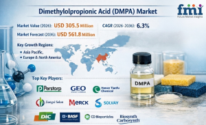 NEWARK, DE, UNITED STATES, March 27, 2026 /EINPresswire.com/ -- The global Dimethylolpropionic Acid (DMPA) market is valued at USD 305.5 million in 2026 and is projected to reach USD 561.8 million by 2036, expanding at a CAGR of 6.3% during the forecast period. Growth is primarily driven by increasing adoption of waterborne polyurethane dispersions (PUDs), stringent environmental regulations, and rising demand for sustainable coatings and adhesives across key industries.