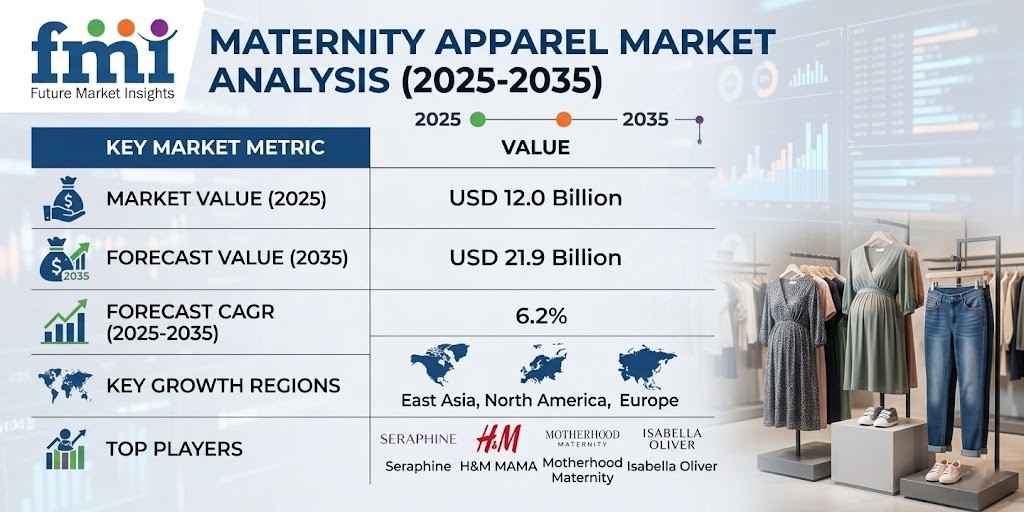 NEWARK, DE, UNITED STATES, April 2, 2026 /EINPresswire.com/ -- The global maternity apparel market is set for steady expansion over the next decade, growing from USD 12.0 billion in 2025 to USD 21.9 billion by 2035, registering a CAGR of 6.2%, according to the latest analysis by Future Market Insights (FMI).